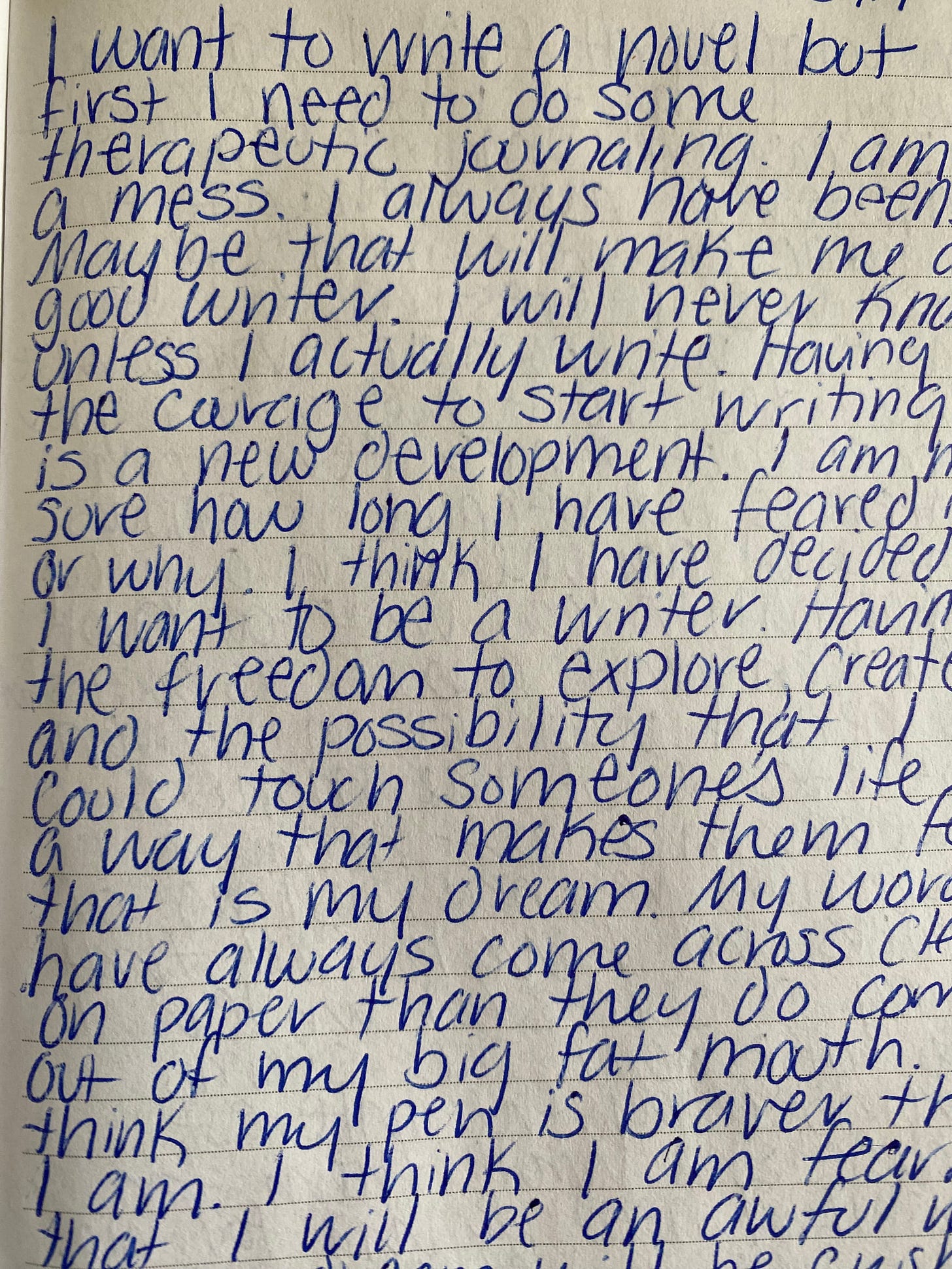My pen is braver than I am, and I am so freaking glad that I decided to become a writer and then finally got my hot mess self together to do it. I have grown so much as a human, a creative, and a writer since that scrawling.